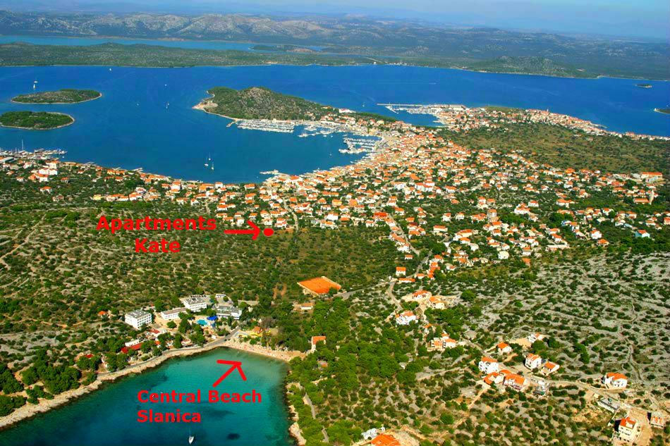 Lokacija apartmana Kate je izuzetno pogodna zbog blizine glavne plaže u Murteru ''Slanica''. Od